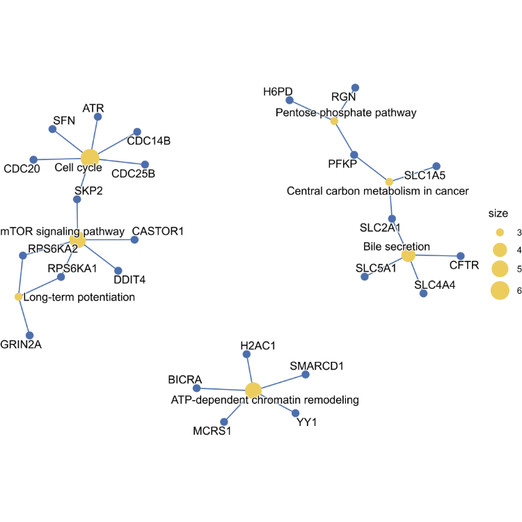 Kyoto Encyclopedia of Genes and Genomes (KEGG) is a collection of hand-drawn pathway maps representing molecular interaction and reaction networks. These pathways cover a wide range of biochemical processes that can be grouped into seven broad categories: metabolism, genetic and environmental information processing, cellular processes, organismal systems, human diseases, and drug development.